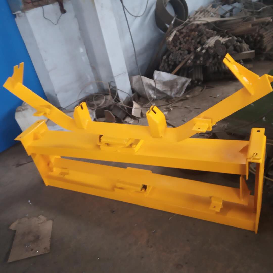 皮帶機(jī)自動(dòng)糾偏裝置在結(jié)構(gòu)上跟傳統(tǒng)的糾偏裝置有很大的區(qū)別,主要有調(diào)偏輥、斜摩擦托輥、支架、調(diào)偏架等組成。支架卡在皮帶機(jī)架槽